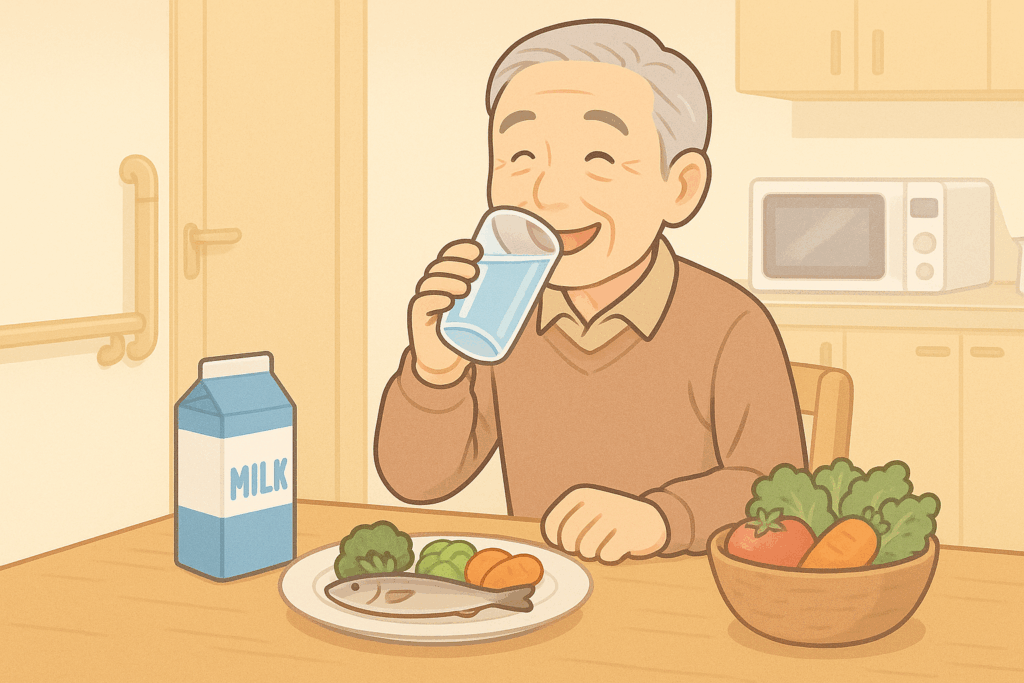 - 水分不足はふらつきや脱水を招き、転倒リスクを高める